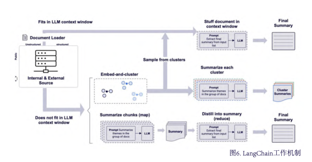 截至2024年3月,LangChain平台已实现了与包括亚马逊、谷歌及微软Azure在内 的主流云存储系统的深度整合,并且封装了涵盖新闻资讯、影视资料和气象信息的多样化API接口。此外,LangChain提供了对Google Drive文档、电子表格及演示 文稿内容的自动化总结、抽取与创建能力;同时涵盖了Google搜索与Microsoft Bing搜索引擎的网络信息检索功能。在自然语言处理领域,它成功对接了OpenAI、 Anthropic 和Hugging Face等多家知名机构的语言模型资源。在编程与代码管理方面,LangChain支持Python与JavaScript代码的自动生成、静态分析与调试功能,并采用Milvus与Weaviate向量数据库系统分别用于存储与检索高维向量嵌入及缓存相关对象。为加速数据访问性能,系统配备了Redis作为缓存数据存储方案,并通过Python Requests Wrapper及其他API请求手段确保了与各类服务的 无缝交互。在并发处理层面,该平台能够实时追踪并记录线程与异步子进程运行中的堆栈符号信息。截至2024年3月,LangChain已具备读取超过50种不同文档类型和数据源的强大能力,展现出广泛的应用潜力和卓越的技术适应性。RAG,即检索增强生成(Retrieval-Augmented Generation),是一种结合了信息检索(Retrieval)和文本生成(Generation)的人工智能技术。RAG是GenAI领域的重大进展,它通过整合外部知识源来增强传统的大语言模型 (LLM)。这种方法拓宽了人工智能的视野,使其能够访问和利用除初始训练数据之外的大量信息。可以将 RAG 想象为一位学者,除了拥有自己的知识外,还可以即时访问到一座全面的图书馆。2. 根据问题在向量数据库(提前将知识库的文档向量化)检索匹配相关的上下文段落信息3. 将检索结果的top_k条段落进行排序,将提示词和组装的段落以及用问题三者形成最终的提示词prompt5. 大模型生成输出并返回给Chatbot,进而返回给用户1. 提高答案准确性:通过引用外部知识库中的信息,RAG可以提供更准确的回答2. 增加用户信任:用户可以通过引用的来源来验证答案的准确性3. 便于知识更新和引入特定领域知识:RAG通过结合LLM的参数化知识和外部知识库的非参数化知识,有效地解决了知识更新的问题4. 减少幻觉问题:RAG能够减少语言模型中的幻觉问题,使生成的响应更准确、可靠AI Agent,即人工智能代理,是一种具备环境感知、决策制定和行动执行能力的智能体,也被称为“智能业务助理”。其旨在利用大模型技术,通过自然语言交互方式高度自动化地处理专业或复杂工作任务,从而显著减轻人力负担。在本质上,AI Agent是建立在大语言模型之上的智能应用,即在大模型的基础上运行的应用程序。AI Agent不仅限于对话交流,还能整合外部工具,直接完成各种任务。一个基于大模型的AI Agent系统可分为四个组件部分:大模型、规划、记忆和工具使用,对应需要四个能力:包含大语言模型能力、具体拆解问题的能力、具有长短期记忆控制的能力、以及具有调用外部工具的能力。AI Agent有望开启新时代,其基础架构可简单划分为Agent = LLM + 规划技能 + 记忆 + 工具使用。在这一结构中,LLM充当Agent的“大脑”,为系统提供推理、规划等关键能力。