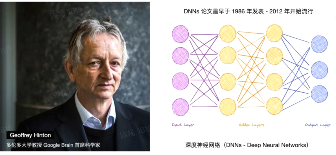 Deep Learning 是一种 Machine Learning 算法,它使用多层神经网络和反向传播(Backpropagation)技术来训练神经网络。该领域是几乎是由 Geoffrey Hinton 开创的,早在1986年,Hinton 与他的同事一起发表了关于深度神经网络(DNNS-Deep Neural Networks)的开创性论文,这篇文章引入了最高传播的概念,这是一种调整权重的算法,每当你改变权重时,神经网络就会比以前更快接近正确的输出,可以轻松的实现多层的神经网络,突破了 1966 年 Minsky 写的感知器局限的魔咒。2012 AlexNet 赢得 ImageNet 挑战赛