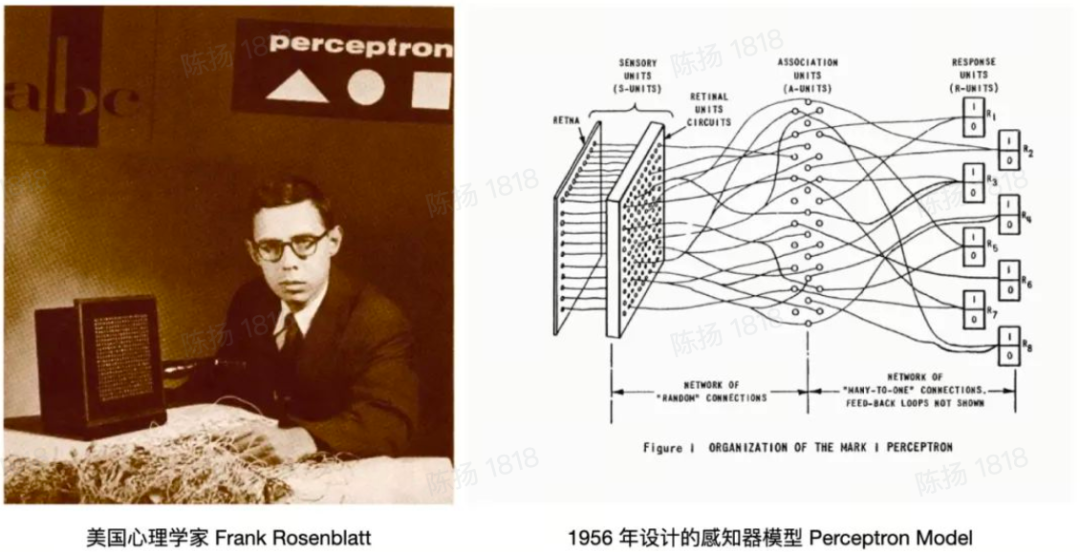 美国心理学家 Frank Rosenblatt 实现了一个早期的神经网络演示-感知器模型(Perceptron Model),该网络通过监督 Learning 的方法将简单的图像分类,如三角形和正方形。