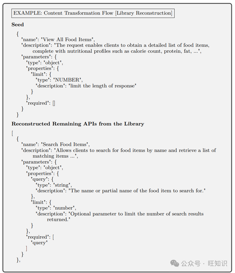内容转换流程 我们使用源代码片段或API描述[26]作为随机种子。如果使用源代码片段作为种子,内容转换智能体会用来从代码片段综合API描述。内容转换流程的目标是从随机种子综合API列表。API列表是通过以下方式创建的:(1) 使用API检索智能体迭代搜索类似代码以扩展API列表,或 (2) 智能体使用LLM假设库中的其他API。