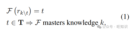给定一个表示为F的大型语言模型,我们规定如果F能够正确回答相应的问题rk_t,则F掌握知识k: