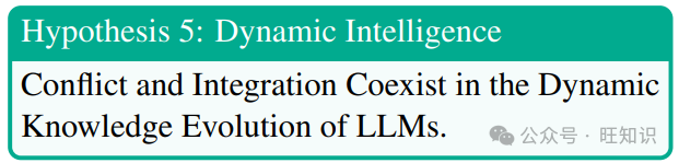假设5:动态智能冲突和整合在LLMs的动态知识演化中共存。