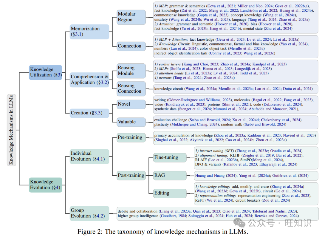据我们所知,我们是第一个回顾LLMs中知识机制的人,并提供了一个涵盖整个生命周期的新颖分类法。