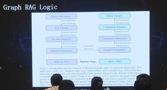 微软在今年 4 月发表了一篇关于 Graph RAG 的论文,规范、系统化地解释了如何使用 Graph RAG 实现引擎搜索功能。我们与微软团队,以及 LlamaIndex 三方合作,对引擎搜索功能进行了探索,分为 index 和 query 两个阶段。