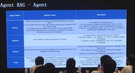 在 Planner 过程中,会输出一系列 system status,并 track 各类 RAG,从而得到相应的背景信息;在 Engineer 和 Executor 过程中,会通过多种 RAG 方法实现,诸如调用相应 API、生成 SQL 或其他代码执行相应计算等功能;Critic 过程判断流程执行情况等。以上就是基本的逻辑。