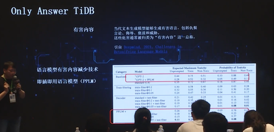 我们的需求只是限制大模型仅回答 TiDB 和业务相关的问题,使用业界常用的毒性检测技术即可实现,将和 TiDB 无关的业务定性为毒性,进而让大语言模型去判断是否和 TiDB 相关。