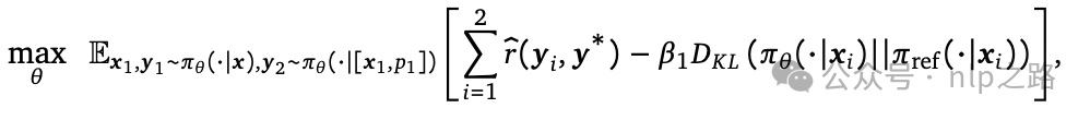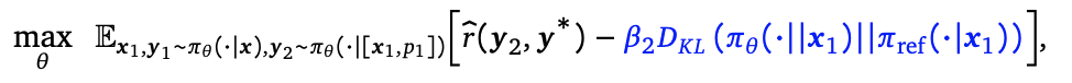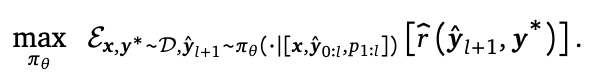 ,将一系列输入token ◦映射到一系列输出token □,以最大化在最后一轮结束时奖励函数给出的打分。可以建模为以下多步RL目标: