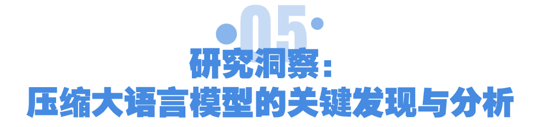 本节将深入探讨研究团队通过一系列消融实验所获得的重要发现和观察结果。这些洞察不仅深化了我们对大语言模型压缩过程的理解,也为未来的研究和应用提供了宝贵的指导。