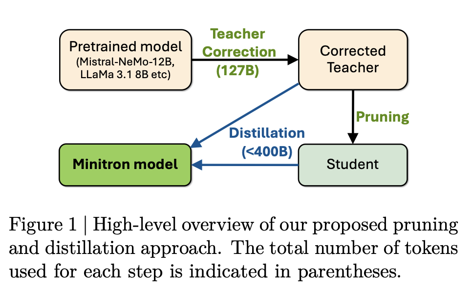 ▲图1|作者团队提出的修剪和蒸馏方法的高级概述:每个步骤使用的令牌总数在括号中表示©️【深蓝AI】编译