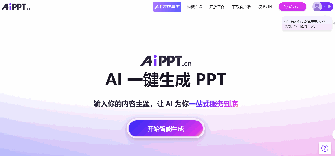 优点:完全免费,不限制下载!可以手机APP生成;可以AI对话,在线编辑,也支持PPT下载;特色是支持语音输入。缺点:模板不多,只有20种;不能自定义模板,不支持PPT格式上传。这是个AI PPT制作工具,前段时间宣布完全免费,不过免费的功能不多。完全通过AI对话来生成PPT,可以一键改字体、更换主题等。也支持PPT、图片和PDF下载。不能手动编辑,体验一般。想体验好一点的话,可以装office插件。