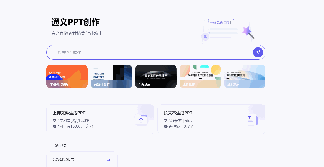 注意,电脑端生成后,可以在APP的记录中下载PPT,但APP中不能直接生成PPT。通义前几天才上线PPT创作功能!最亮眼的是支持音视频解析后直接生成PPT。关键是免费无限制生成和下载为PPT格式!风格大多是简约风,有点像Gamma的感觉,略显高级感,绝对是新晋的性价比之王!使用方式:在官网首页 智能生成PPT 那里进入生成。官网:https://tongyi.aliyun.com/qianwen