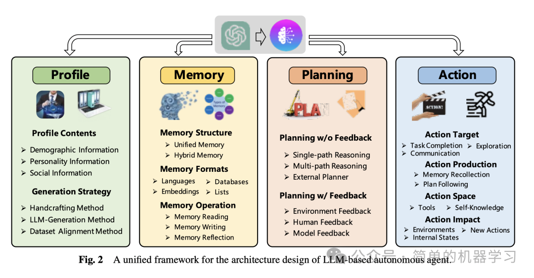 通过上述模块的协同作用,基于LLM的自主代理能够模拟人类行为,有效执行多样化任务。