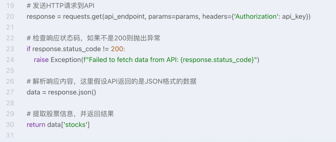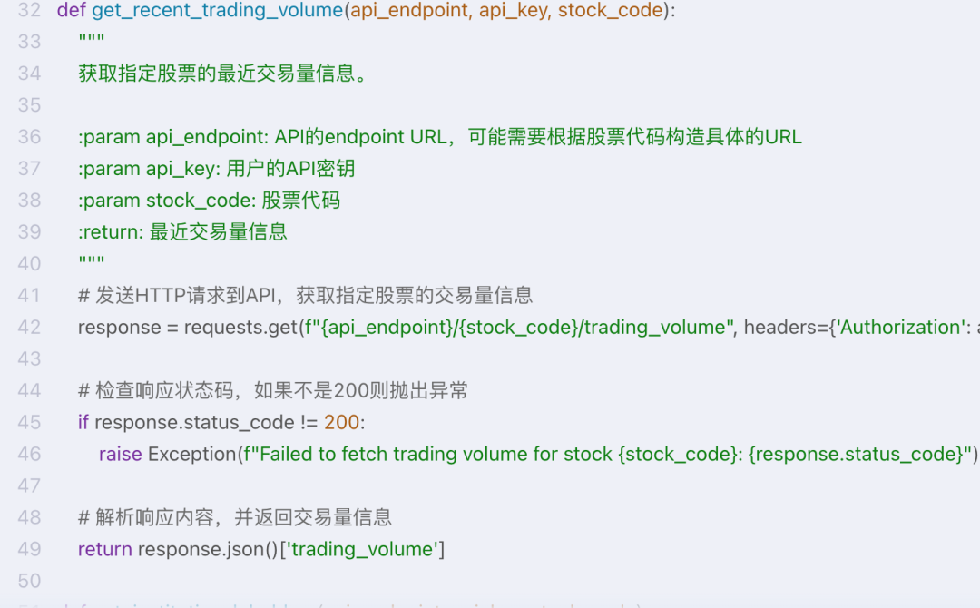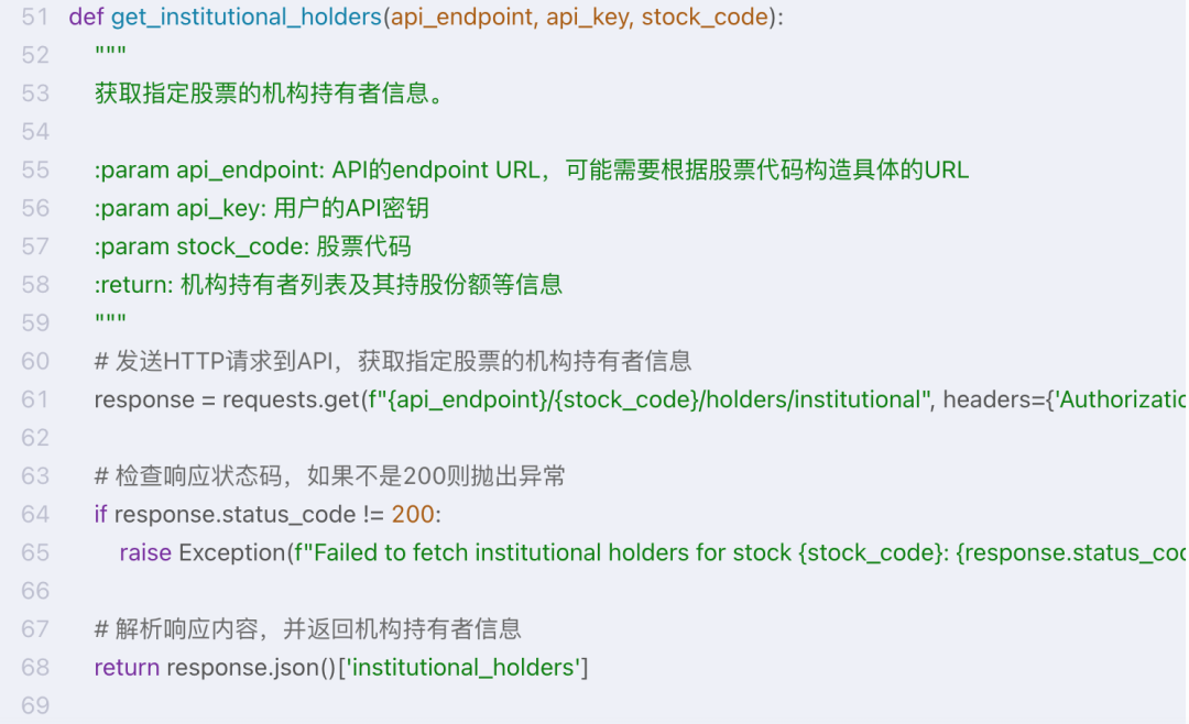 编写一个函数,该函数接受API接口URL、API密钥和股票代码作为参数。