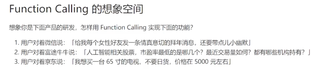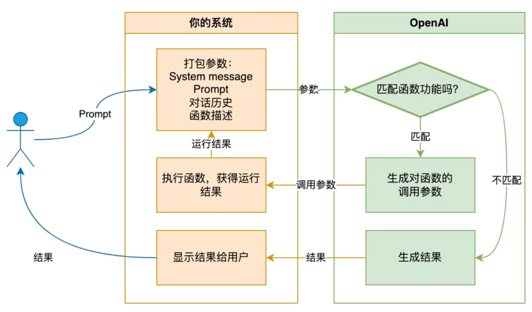 一、用户输入:用户通过自然语言向模型提出问题或请求。这些问题或请求可能需要调用外部函数来获取答案或执行某些操作。