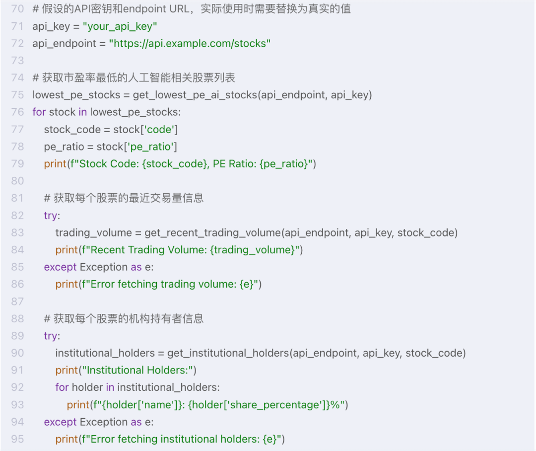 步骤二:定义函数以获取市盈率最低的人工智能股票