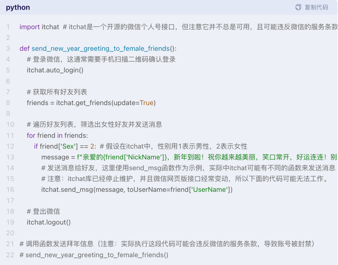 用户对着微信说:给我每个女性好友发一条情真意切的拜年信息,还要带点儿小幽默。