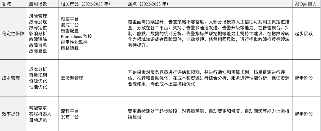 在AIOps领域,当前除了对故障定位进行了深入的探索和落地,当前也在智能告警、变更检测、智能客服、容量评估等其他领域进行一些探索和落地。
