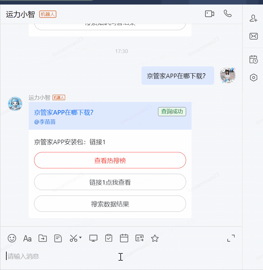 基于大模型搭建运力智能机器人“运力小智”,定位是一个集知识问答、数据分析功能于一体的便携式知识百科信息问答平台。它以运力平台日常工作所涉及的内容为核心,涵盖了业务SOP、常见系统问题、操作手册、实时类信息查询(天气、安全)、报表查询、数据分析等多项内容,致力于帮助运力用户(内部运营岗位、承运商、司机)更便捷、高效的获取有效信息,并通过大模型能力持续赋能,为用户提供个性化的推荐和良好的用户体验,减少用户获取知识的成本以及减少异常等问题的管理难度。从使用频次、大模型赋能的技术特点,针对一线人员和管理人员的痛点,并调研其他事业部等情况,结合运力自身业务特点综合考虑,运力机器人功能建设应用在以下两个方向推进:•智能问答:通过用户和机器人的对话(包括单轮对话和上下文多轮对话),为用户解答运力日常工作中常见问题以及快速便捷进行数据信息查询,减少用户获取知识路径困难和响应不及时,释放用户问题依赖技术人工支持等问题。•智能主动预警:除了支持个人用户以及群聊用户主动搜索进行对话以外,还支持面向m端/pc端指定用户、特定群组,主动发送单聊消息、语音信息(例如定时或固定周期发送报告、识别到的异常信息等)进行提示预警,让问题主动、及时的触达主责用户。