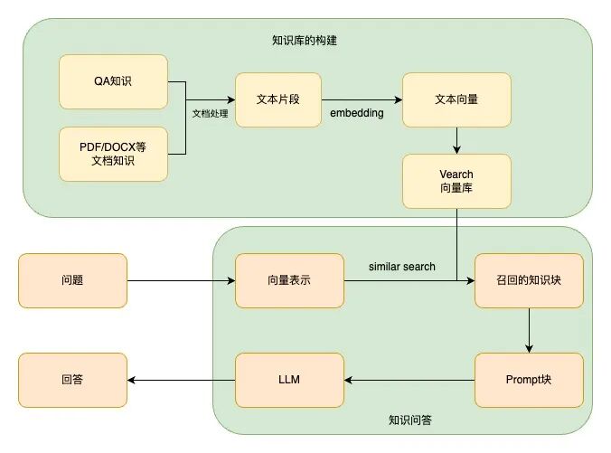 基于RAG的知识问答流程是比较固定的:根据问题召回知识,将问题、知识、问答历史等内容拼接为大模型prompt,使用大模型进行回答。此项目中,我们额外添加了问题重新生成环节:根据问答历史对本轮问题进行重新生成,使重新生成的问题在知识相似度召回时具有更好的效果。这部分使用langchain的精简问题链实现,一段示例代码如下。from langchain import PromptTemplate