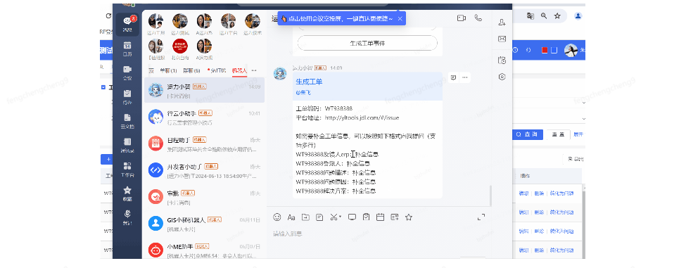一线咨询问题快速转化工单,大大提高每日值班人员手动录入工单的效率