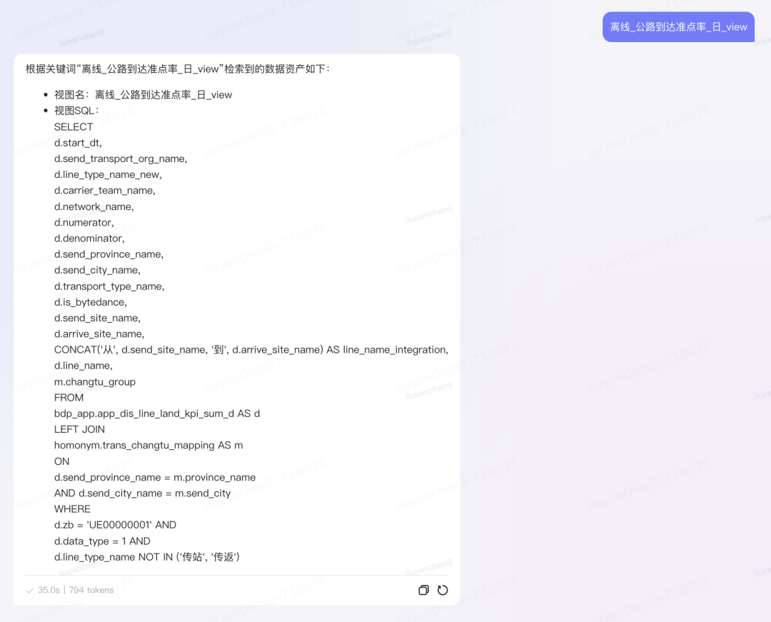 使用人数和咨询次数逐步提升,当前每周活跃用户保持在50~100左右,咨询次数大于500+,覆盖总部九大区共154个组织,咨询人数347人,共68个岗位。;调度、精益改善相关岗位的智能人员,每天需要高频的查看派车单轨迹,现在工作台查询轨迹需要4步操作,查询起来需要2~3分钟,现在通过运力小智快速查询简化成一步,查询时间减少为1分钟内,大大提高了轨迹查询的效率,截止当前,轨迹相关咨询次数共1230次,一线人员反馈使用效果比较好针对一线调度人员,当发生车辆故障、经济纠纷、交通事故等人为在途异常等情况下,需要通过车牌号查车辆注册时间等信息来核查异常,需要对比行驶证信息,另外有些司机上传的图片是PS的,需要通过看照片抓这种PS行驶证的情况。以上两种情况下需要通过车牌号查询对应的行驶证正反面的图片信息,但是运营同事反馈在一些场景下不在电脑旁边时,查询很不方便,需要发给在公司的同事帮忙查询,工作效率低,针对这种情况,现在通过运力小智问答的方式直接返回行驶证信息,查询时间由10分钟减少为1分钟内返回结果数据分析类,运力效率、体验类指标一线人员咨询结果成功率70%左右知识问答类,一开始用户知识类的发散提问成功率20%~30%,引导用户熟悉使用后,现在用户特定场景的使用率提升,知识问答类成功率达到50%左右六、总结与规划