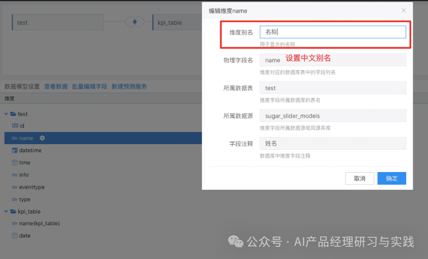 在编辑页面可以将字段名称设置为可读性较高的中文别名:
