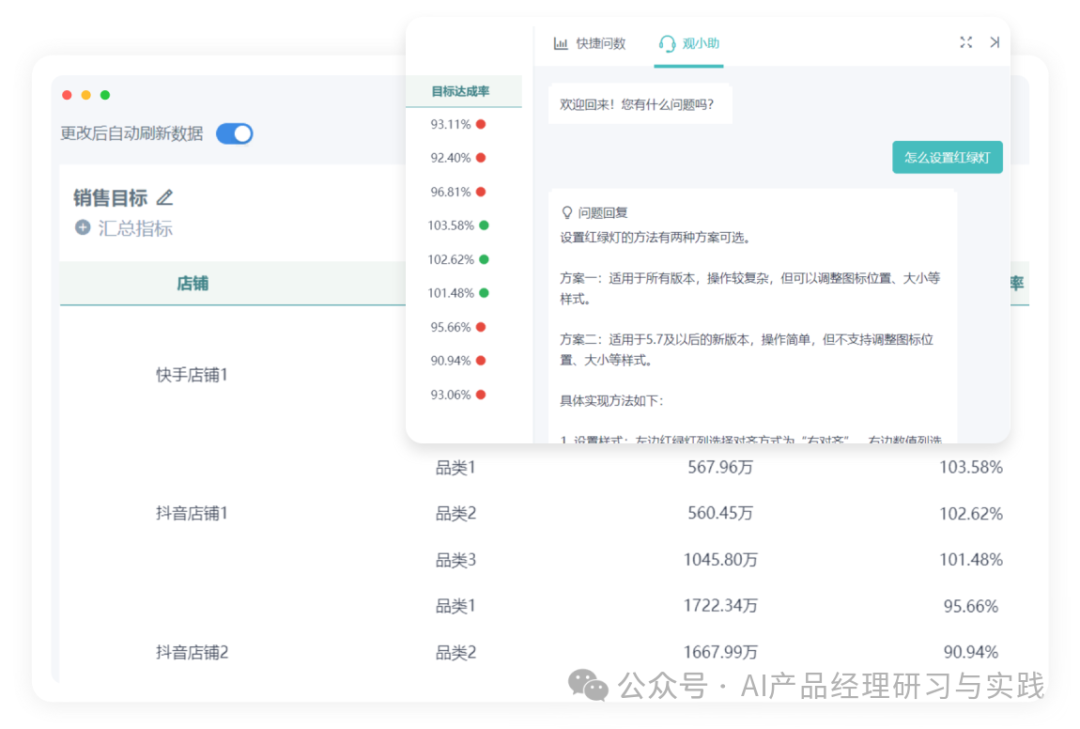 - AI赋能: 基于BI系统能力,结合企业内部数据源和AI生成的数据指标,自动识别异常原因并用自然语言展示,减少认知偏差(例如波动分析、异常分析和预警)。