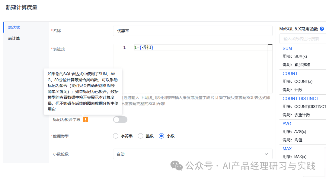 我们也可以新建度量(指标加工),这就是常规的BI功能了: