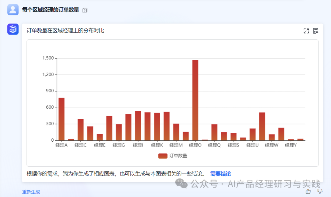 - 当生成的图表不符合预期时,可以点击「重生生成」但最多可以点击三次——为什么是3次?这个设计可能是为了防止用户无限制地重新生成结果,从而导致资源浪费和系统压力。限制重生次数可以鼓励用户更加仔细地考虑和优化他们的查询,同时也是一种计算资源的管理策略。此外,这也可能是基于用户行为的统计分析,认为三次重试足以覆盖大多数情况下的需求调整。