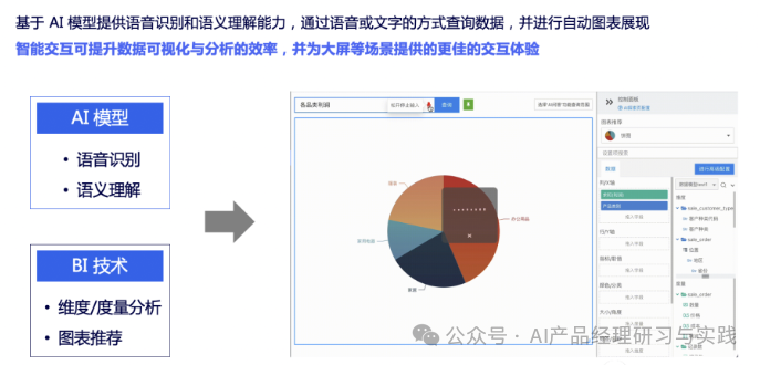 随着人工智能技术的不断进步,AI+BI成为了一个新兴领域,它指的是将人工智能,尤其是机器学习和自然语言处理技术,集成到商业智能系统中,以自动化和增强数据分析和决策过程。特别地,结合AIGC技术,可以支持用户通过对话来完成数据探索、报表制作等工作,进一步提升数据分析效率,重构 BI 产品的人机交互方式。