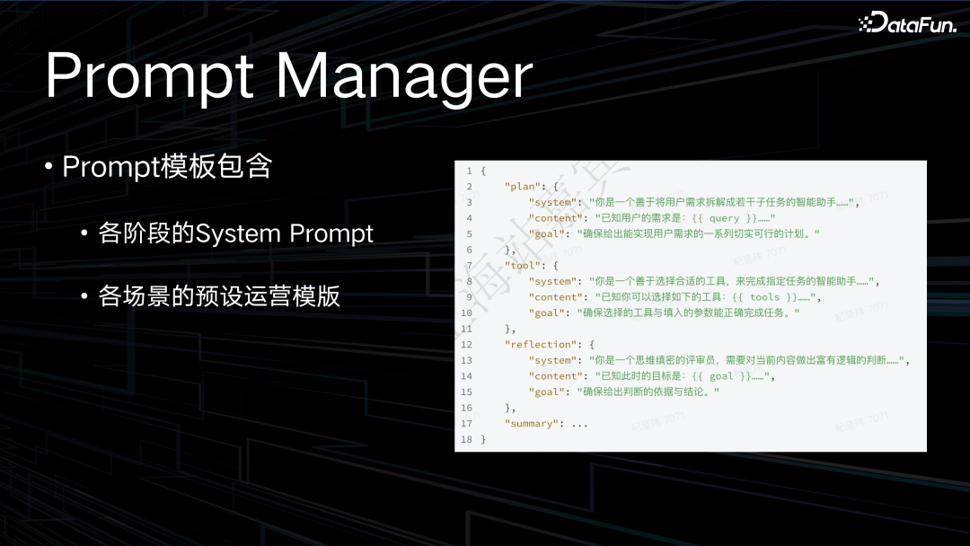 在这个例子中当我给定了场景模板后,它输出的任务计划会更贴合我们在产品设计之初的需求。3. Prompt Manager