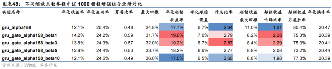 2、从中证1000组合业绩看,注意力门控模块综合表现占优。除Master模型在资金流数据集上表现一般之外,其余情况下注意力门控模块对应组合年化超额收益率和信息比率指标均最高,相比未加门控机制模型年化超额收益率可提升1至4 pct,信息比率可提升0.1至0.5的水平。