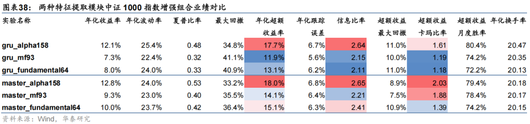 Master模型的市场特征门控机制和注意力机制设计逻辑清晰,结构巧妙,均有较大参考价值。本研究借鉴该模型,开展系列实验,尝试提升AI量化模型表现,并应用于指数增强组合的构建。