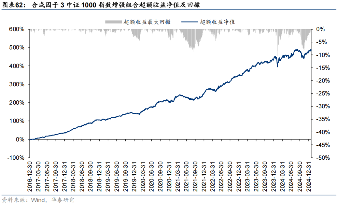 其中,合成因子3对应指增组合超额收益净值曲线及动态回撤如下。