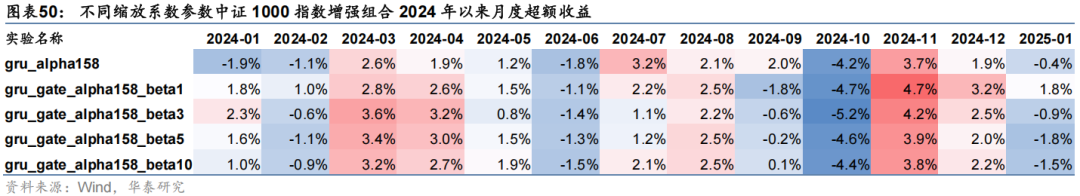 从以上结果可知,线性门控模块和注意力门控模块均有效,其中注意力门控模块对应组合业绩表现有显著提升,具体来说: