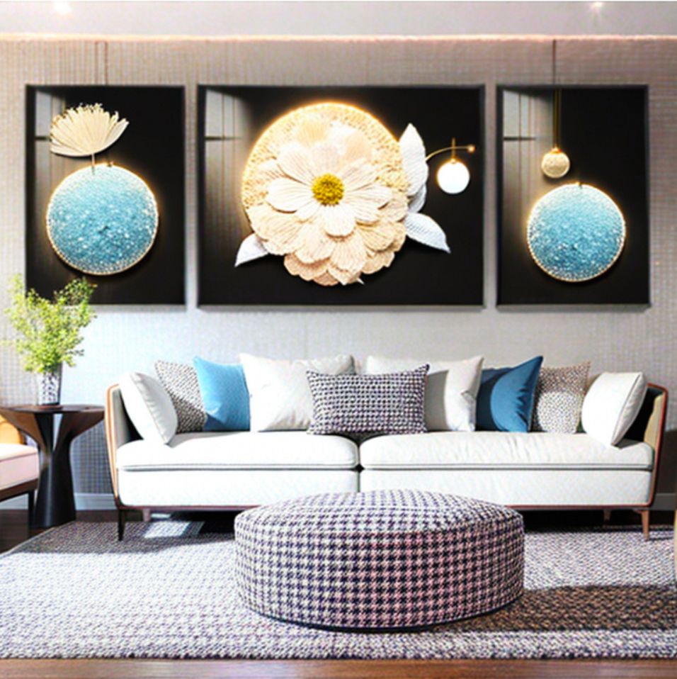 对于文生图技术,用户只需要需入一段描述文本 (prompt),模型就能根据prompt生成对应的图片。常用的文生图方法包括Stable Diffusion和DALL-E等技术。如下是Stable Diffusion的简单示意,首先对输入prompt进行编码,然后进行多次的扩散生成过程,最后解码得到生成的图片。我们收集了大量高质量的家装图像-文本对,用于训练文生图大模型。我们的文生图模型支持用户输入详细的长文本prompt,并能够以高文本响应度生成精美的效果图。示例:一个现代风格的客厅,采用中性色彩。房间内有一张白色沙发,上面装饰着各种图案的靠垫,旁边是一个带灯的边桌。沙发上方的墙上挂着三幅框画,每一幅都以独特的设计描绘了一朵花。房间的右侧还有一株高大的盆栽,沙发前是一张千鸟格图案的脚踏。地板铺着浅灰色的地毯,墙壁涂成柔和的灰色调。
