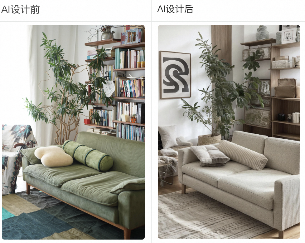 真能造的目标人群是寻找硬装灵感和软装搭配的购物者,用户只需上传家中的精装或毛坯照片,AI即可在几秒内展示多种装修风格的概念图。