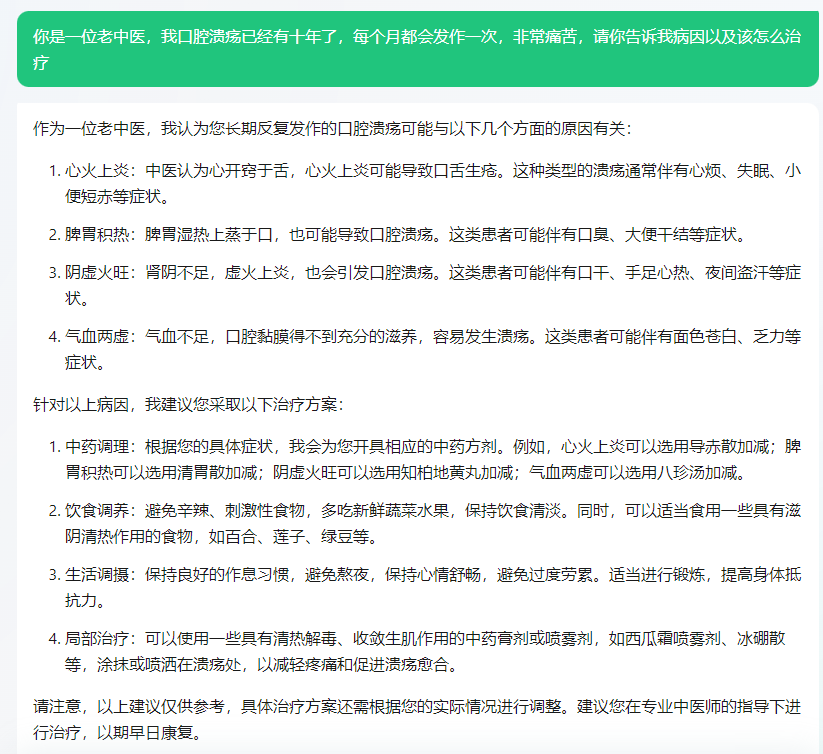 正好我最近口腔溃疡,十年的老毛病了,试试让它帮我解决吧。
