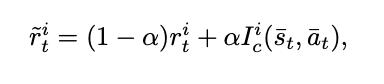 在定义了合作性度量指标之后,需要将其整合到奖励函数中,以实现奖励塑造。论文提出的奖励函数调整公式如下: