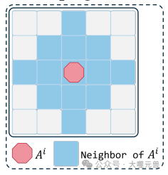 为了简化计算过程,论文引入了邻居的概念。在网格图中,如果两个智能体之间的曼哈顿距离不超过 (d_n),则认为它们是邻居。选择合适的邻居半径 (d_n) 可以在保证智能体间有效交互的同时,最大限度地简化计算过程。