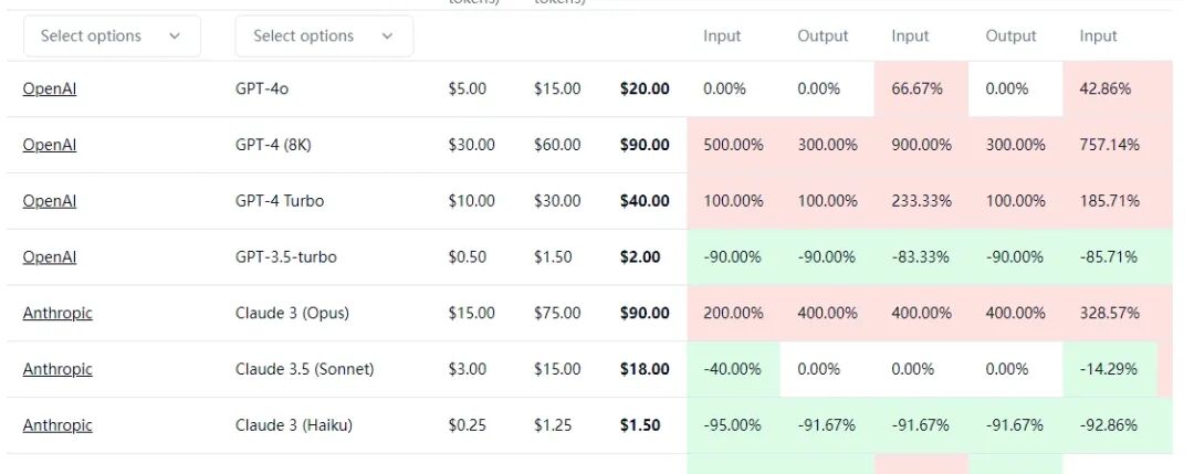 抱抱脸各种LLM价格对比,方便开发者进行选择。