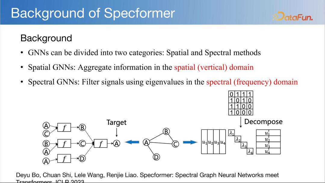 GNNs:谱域指的是利用图谱的特性,如拉普拉斯矩阵的特征值和特征向量,来分析和处理图数据。
