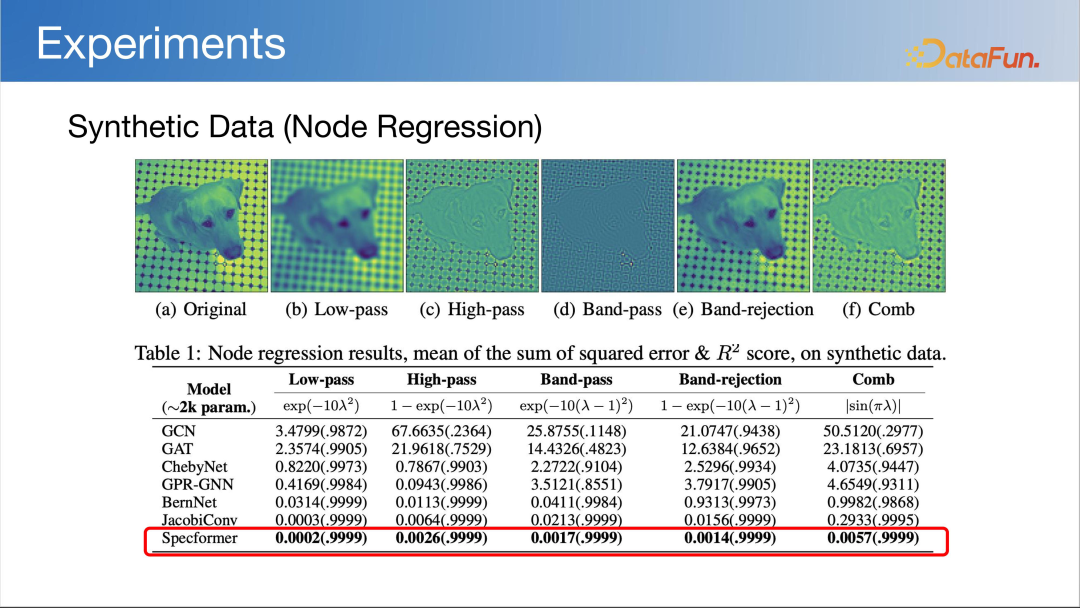 合成数据(节点回归)实验结果显示 Specformer 具有很好的性能。