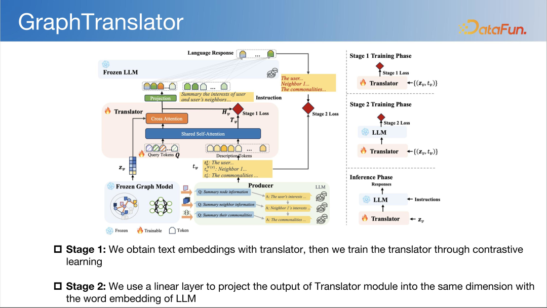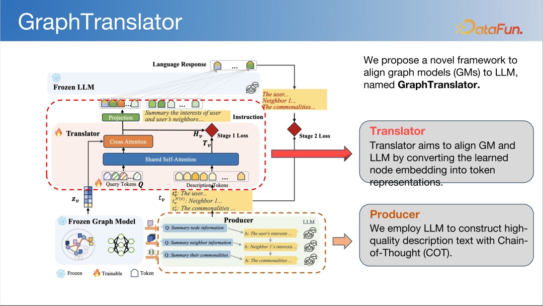 我们提出了一个新的框架来使图模型与 LLM 保持一致,称为 Graph Translator。- Translator:旨在通过将嵌入的学习节点转换为令牌表示来对齐 GM 和 LLM。