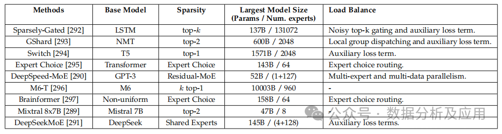 大型语言模型数量增长,但许多闭源,限制了学生模型的知识获取。知识蒸馏通过利用教师模型的响应,即知识剩余来源,将信息传递给学生模型。根据学生模型的知识来源,大型语言模型的知识蒸馏可分为黑盒蒸馏和白盒蒸馏。黑盒蒸馏适用于学生模型可以从教师模型响应之外的其他来源获取知识的场景,而白盒蒸馏适用于学生模型只能从教师模型响应中获取知识的场景。紧凑架构设计是一种提高效率和精简的理念,通过优化网络结构和算法,显著提高模型效率,同时减少计算资源和内存的使用。它可分为微观和宏观两个层次进行研究,重点优化注意力计算和Transformer架构设计。Transformer中的标准自注意力机制时空复杂度为O(N2),阻碍了处理长序列问题的能力。为了解决这个问题,出现了高效注意力工作,包括稀疏注意力、线性近似注意力和闪存注意力等。神经架构搜索(NAS)是一种有前途的解决方案,用于自动设计神经网络模型的结构和参数。为了解决硬件设备部署和资源有限硬件设备上的低延迟推理问题,提出了HAT方法,通过离线训练延迟预测器来加速搜索速度。HAT还观察到关注多个编码层对解码层是有益的,不同的硬件对模型有不同的偏好,这为不同硬件条件和延迟要求下的Transformer模型提供了一种高效的NAS方案。同时,它可以很好地与其他压缩加速方法相结合。扩大语言模型的规模可以提升其在自然语言处理任务上的性能,但会带来巨大的计算成本和内存需求。动态神经网络(DyNN)仅使用网络的一部分来处理每个输入,使得整个模型在资源受限的环境下更灵活、更有效地满足计算需求。目前对DyNN的研究主要包括早期退出、级联推理和专家混合(MoE)。早期退出是为了在深度神经网络(DNN)的早期层中动态终止推理过程,从而降低计算成本并提高响应时间。级联推理利用一系列不同规模的语义模型来处理不同复杂程度的请求。MoE在多个子网络上横向扩展前馈网络(FFN),其中只有一个或少数几个子网络在单个前向传递过程中被激活。MoE被广泛纳入当今LLMs的架构中,以提供高效而强大的服务。表5中总结了一些具有代表性的MoE方法。