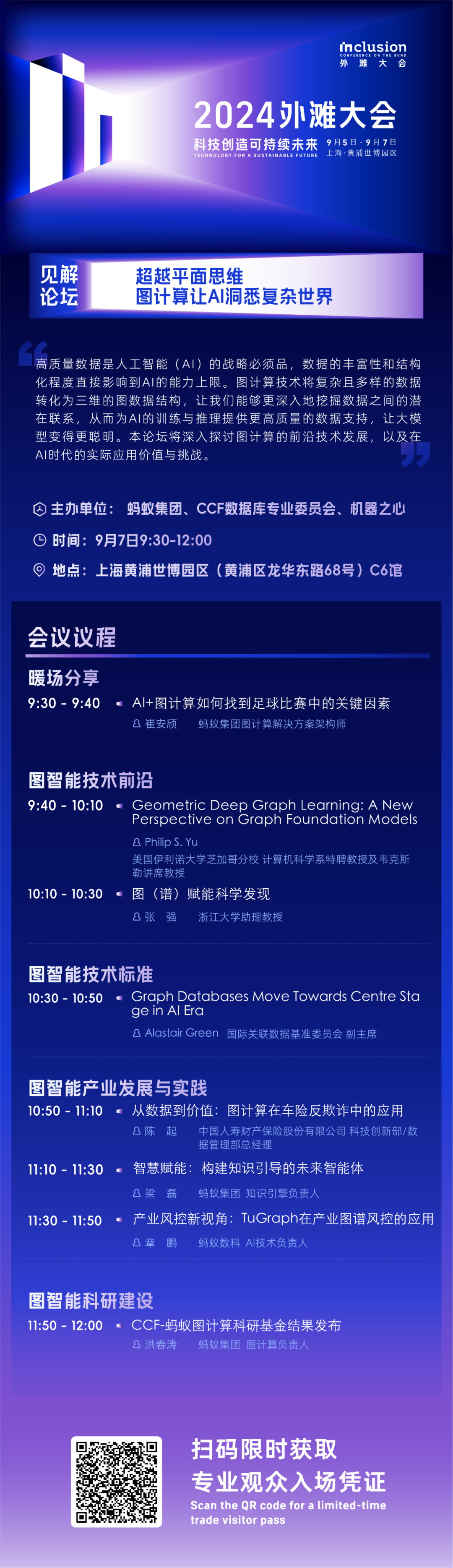 由蚂蚁集团与中国计算机学会数据库专委、机器之心联合主办的“超越平面思维,图计算让AI洞悉复杂世界”论坛将深入探讨图计算的前沿技术发展,以及在AI时代的实际应用价值与挑战。
