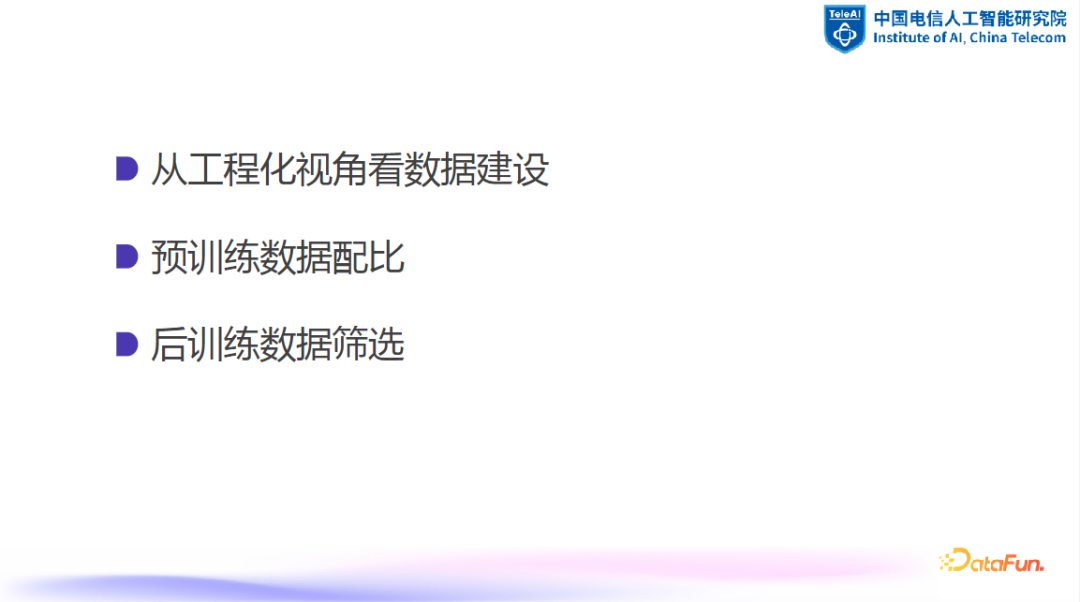 - 数据版本动态调整:伴随模型训练进展,数据版本需要持续动态调整。初始的数据准备可能无法完全满足模型训练的需求,因此在整个训练过程中需要不断地进行微调。此外,在后训练阶段,还需要对数据进行筛选,以适应模型训练的前进方向。