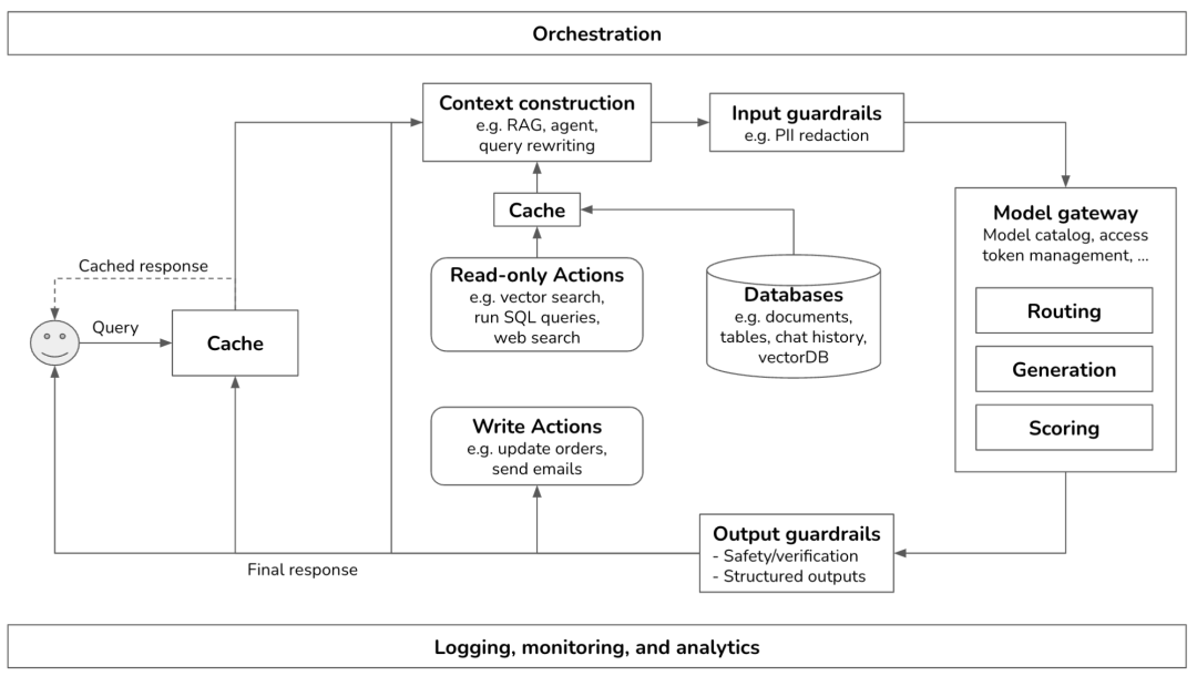 这篇文章从基本架构出发,逐步添加了应对不断增长的应用复杂性的组件。每个新增的组件都有各自的好处和挑战,需要仔细考虑和实施。虽然组件的分离对于保持系统的模块化和可维护性很重要,但这种分离是灵活的。组件之间存在许多重叠。例如,模型网关可以与守护机制共享功能。缓存可以在不同的组件中实现,例如在向量搜索和推理服务中。这篇文章比我预期的要长得多,但仍有许多细节我未能进一步探讨,特别是在可观测性、上下文构建、复杂逻辑、缓存和守护机制方面。我将在即将出版的《AI工程》一书中会深入探讨这些部分。