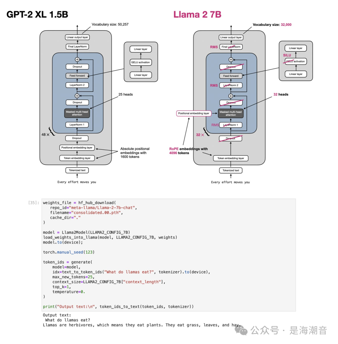 今天看到Sebastian Raschka 绘制的GPT-2 XL 1.5B、Llama 2 7B以及Llama 3 8B的架构对比图。
