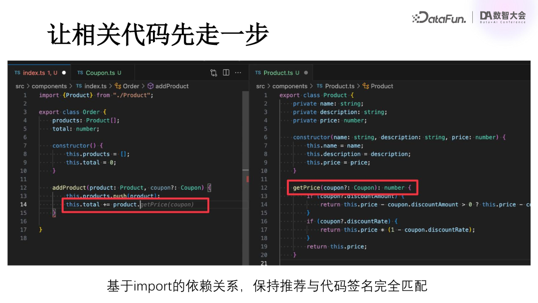关于 import 语句,在导入了某个模块或库后,模型或开发工具就能自动在这个文件或库中寻找你所需的方法。例如,如果你要调用一个名为 getPrice 的方法,并且该方法接受一个参数,那么如果你已经 import 了这个方法,模型就能准确地为你补全这段代码,包括方法名和参数传递。然而,如果你没有导入相应的模块,模型在尝试补全代码时可能会遇到困难,因为它无法确定你应该调用的方法的确切名称。在这种情况下,模型可能会给出一些与你的意图不符的建议,比如 getTotal、getAmount 或其他任何可能的方法名。因此,import 语句的使用,对于确保模型能够准确补全代码,效果非常好。
